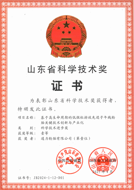 近日,2024年度山东省科技创新大会在济南隆重召开。会上,山东省科学技术厅正式公布了2024年度山东省科学技术奖获奖名单。通力轮胎有限公司申报的《基于高生命周期 ...